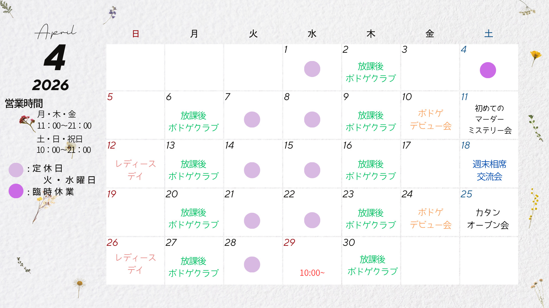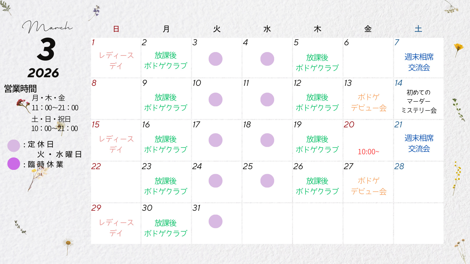 | 営業時間 | 平日 11:00 ~ 21:00 土日祝 10:00 ~ 21:00 |